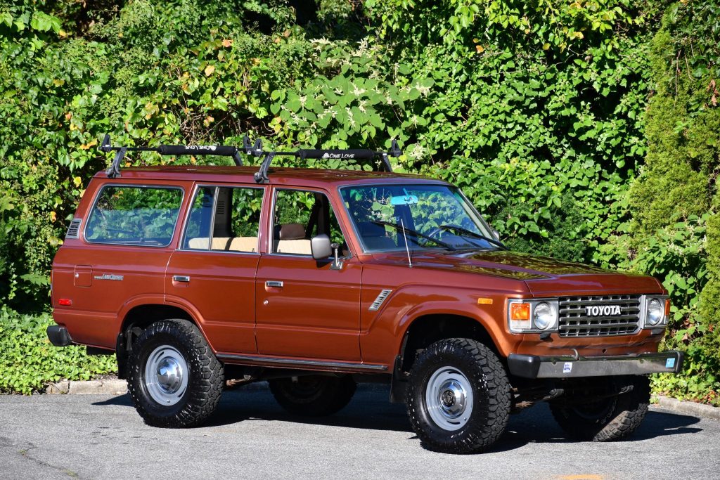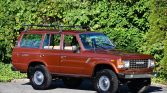 This 1984 Toyota Land Cruiser FJ60 was modified with a 2″ lift kit, an Old Man Emu steering stabilizer, 16″ Braid wheels, Sylvania headlights, a roof rack, and a Blaupunkt stereo linked to aftermarket speakers. The truck is finished in brown over tan and brown upholstery and is powered by a 4.2-liter 2F inline-six linked with a four-speed manual transmission and a two-speed transfer case.