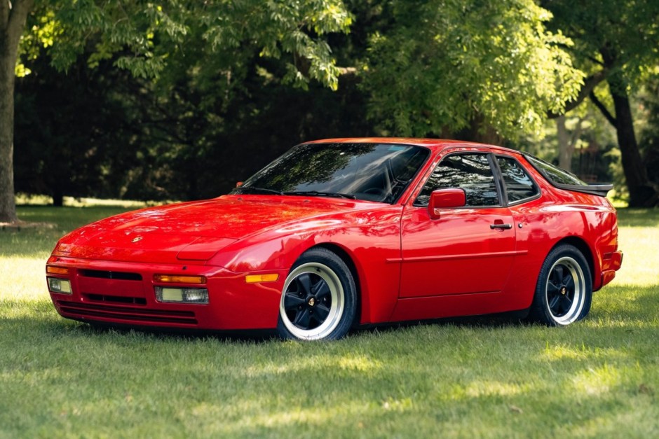 This 1986 Porsche 944 Turbo is powered by a turbocharged 2.5-liter inline-four paired with a five-speed manual transaxle. Finished in Guards Red over black leather, the car is equipped with 16″ alloy wheels, a sunroof, fog lights, and pop-up headlights as well as a JVC stereo, an alarm system, cruise control, and air conditioning. Service in 2024 includes replacing the tires, timing belt, water pump, thermostat, and air conditioning drier as well as converting the system to R134a refrigerant.