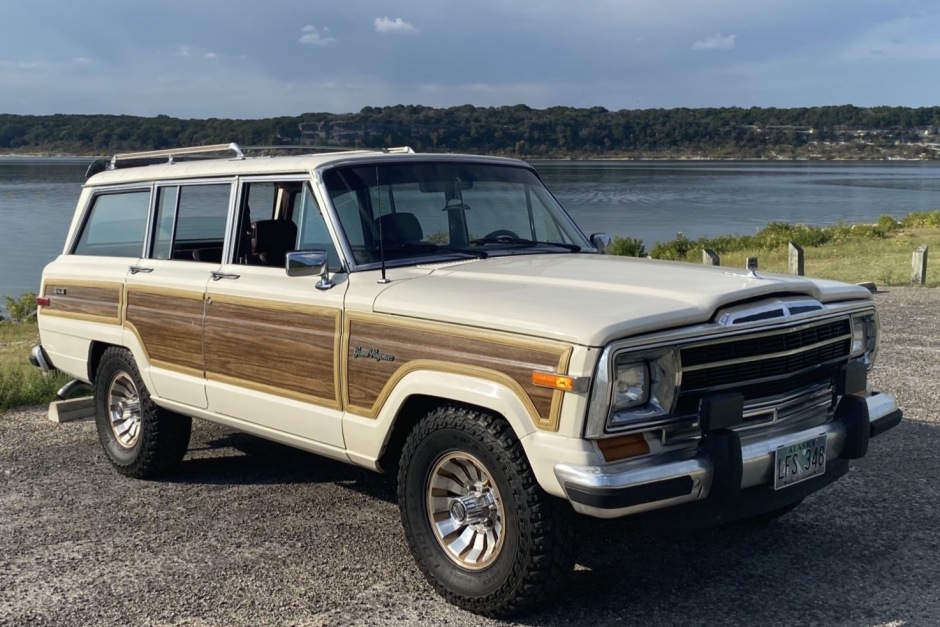 This 1987 Jeep Grand Wagoneer is said to have been delivered new to Herbert Motors in Longmont, Colorado, and spent several years in Texas before being acquired by the seller in 2021. The truck is finished in beige with with woodgrain paneling over maroon leather upholstery and is powered by a 5.9-liter V8 mated to a three-speed automatic transmission and a dual-range transfer case. Equipment includes LED headlights, driving lights, a roof rack, cruise control, air conditioning, a power-retractable rear window, and an aftermarket head unit that features a backup camera and Bluetooth.