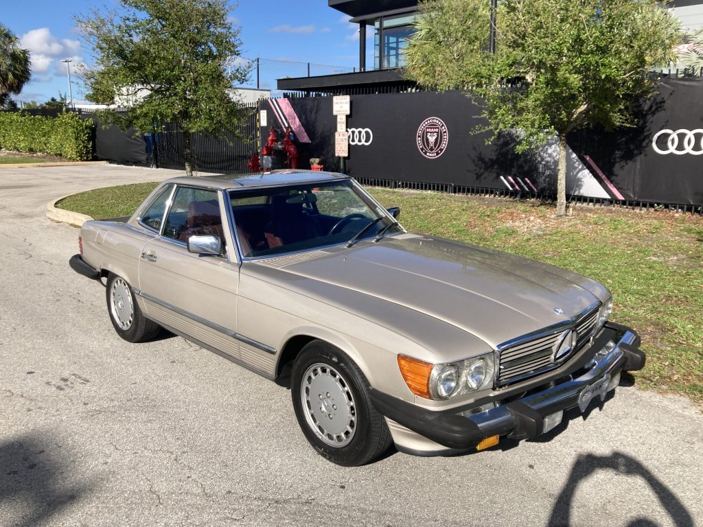 This 1987 Mercedes-Benz 560SL was initially delivered to Benzel-Busch Motor Car Corporation in Englewood, New Jersey, and it has remained registered in Florida for three decades. Showing 80k miles, the car is powered by a 5.5-liter V8 paired with a four-speed automatic transmission and is finished in Smoke Silver Metallic over Burgundy leather upholstery. Equipment includes a limited-slip differential, a black soft top, silver-finished 15″ Gullideckel alloy wheels, fog lights, an Alpine head unit, electric windows, cruise control, and automatic climate control.