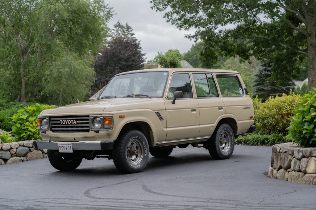This 1987 Toyota Land Cruiser FJ60 was registered in California and Washington before the current owner’s acquisition in September 2014 and its subsequent relocation to Connecticut. The truck is finished in beige over a tan interior and is powered by a 4.2-liter inline-six paired with a four-speed manual transmission and a dual-range transfer case. Equipment includes air conditioning, headlamp washers, chrome bumpers and trim, a rear window wiper, rubber floor mats, and an aftermarket CD stereo and speakers. The truck received new hoses and belts in 2018, and an oil change was last performed in August 2020.
