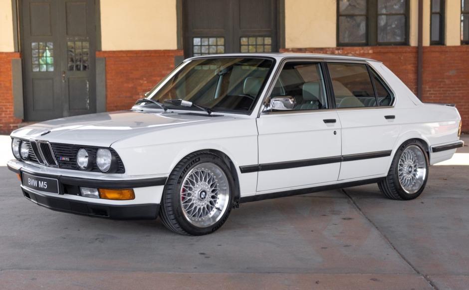 This 1988 BMW 535is is finished in white over tan leather and powered by a bored and stroked 3.8-liter S38B35 inline-six that was built by Bavarian Workshop of Canoga Park, California in 2006. Equipment includes European-market bumpers, an M-Technic rear spoiler, a sunroof, air conditioning, power-adjustable front sport seats, 17″ wheels, a five-speed manual transmission, ceramic coated headers, a Dinan exhaust system, Autronic engine management, and Wilwood/UUC Motorsports brakes.