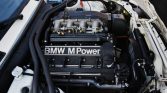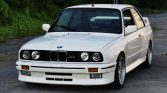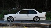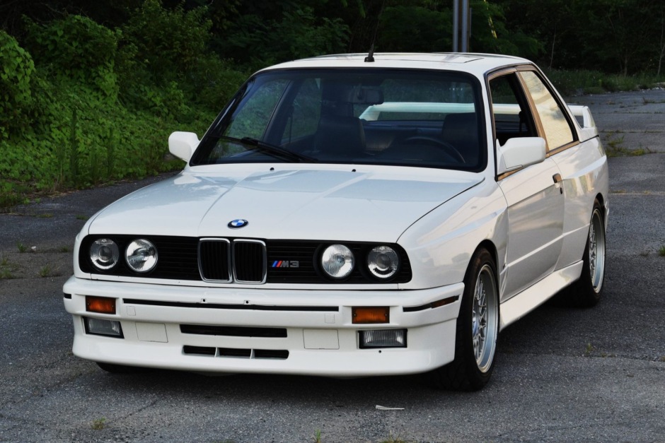 This 1988 BMW M3 is finished in white over black leather and is powered by a 2.3-liter inline-four mated to a five-speed manual transmission and limited-slip differential. Factory equipment includes an electric sunroof, an onboard computer, power windows, and cruise control, while modifications consist of Ireland Engineering lowering springs, Supersprint exhaust components, and 16″ alloy wheels.