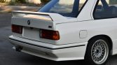 The car was finished from the factory in Alpine White (146) and is believed to have been repainted under previous ownership. Features include an integrated front lip, a rear spoiler, and wider fenders in comparison to standard E30 models. Additional equipment includes an electric sunroof, fog lights, twin exhaust outlets, and windshield wipers that have been modified for single-arm operation. The Carfax report lists a theft and subsequent recovery of the vehicle in 1995 as well as a damage report in December 2020, which the seller states resulted in repair to the rear end.