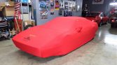 Pininfarina-designed bodywork is finished in Nero and features a black removable roof panel along with a roof spoiler, Scuderia Ferrari shields…