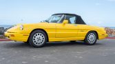 This 1992 Alfa Romeo Spider Veloce was first delivered to Don Jordan Chrysler-Plymouth of Beachwood, Ohio, and was acquired by the seller in July 2020. The car is finished in yellow with a black convertible top, and power is from a 2.0-liter inline-four paired with a three-speed automatic transmission. Equipment includes 15″ alloy wheels, black leather and suede upholstery, air conditioning, power windows, and an AM/FM CD stereo. Refurbishment work in 2019 and 2020 has included repairing…