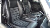The cabin features seats upholstered in black leather with suedecloth inserts as well as matching carpets protected by Alfa Romeo-branded floor mats. Amenities include air conditioning, power windows, a leather-wrapped shift knob, a locking glovebox, and a Sony cassette stereo.