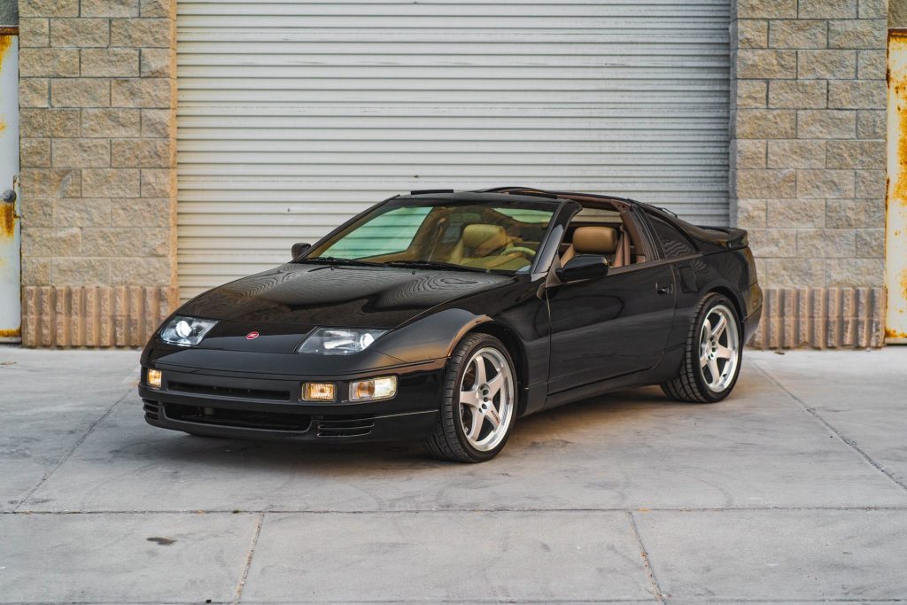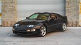 This 1993 Nissan 300ZX is powered by a twin-turbocharged 3.0-liter V6 paired with a five-speed manual transmission and a limited-slip differential and is finished in black over tan leather. Equipment includes removable glass roof panels, a rear spoiler, 18″ NISMO wheels, a power-adjustable driver seat, automatic climate control, and a Bose audio system. Modifications include adjustable suspension, enlarged brake rotors, a short-throw shifter kit, a Pioneer infotainment stereo head unit, and an HKS boost controller. The car was sold new at Fremont Nissan in Newark, California, and it was acquired by its current owner in September 2009.