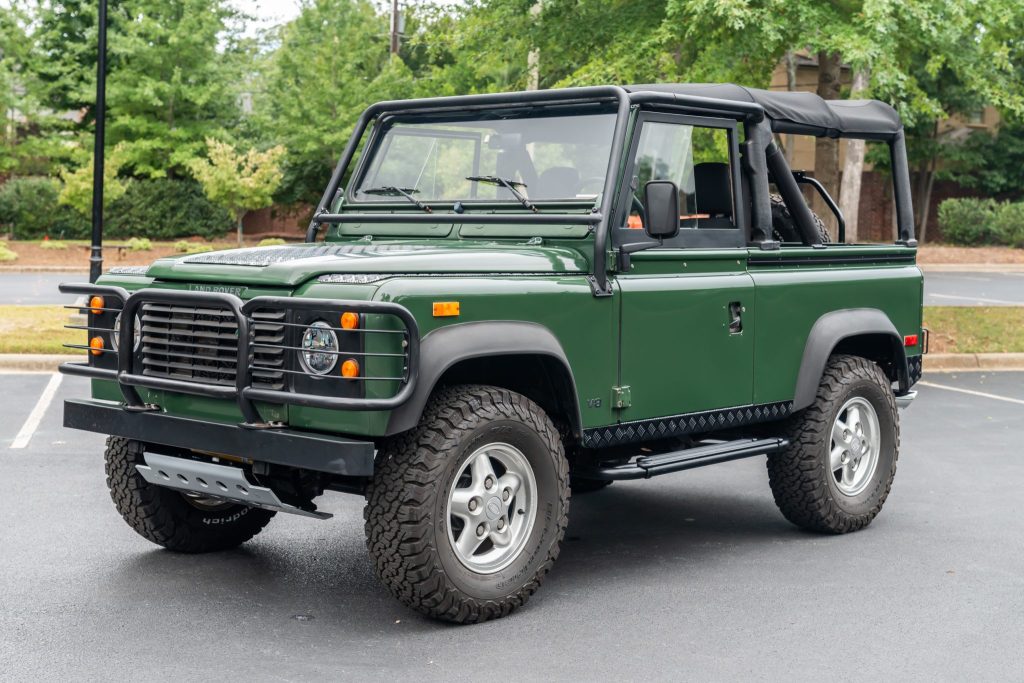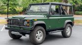 This 1994 Land Rover Defender 90 is #40 of approximately 2,000 North American-Specification examples imported into the US for the model year, and it shows 81k. The truck is finished in Coniston Green over Charcoal cloth and vinyl upholstery and is powered by a 3.9-liter V8 linked with a five-speed manual transmission and a dual-range transfer case. Equipment includes a roll cage, Surrey and Badger black soft tops, a front brush guard, 16″ five-spoke wheels, Bilstein dampers, a…