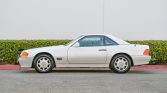 This 1994 Mercedes-Benz SL500 is finished in Polar White over gray leather and is powered by a 5.0-liter V8 paired with a four-speed automatic transmission. Equipment includes a removable body-color hardtop, a black soft top, automatic climate control, a Bose sound system, fog lights, and 16″ eight-hole alloy wheels.