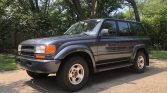 This 1994 Toyota Land Cruiser is said to have remained in the seller’s family since its purchase from Schaumburg Toyota of Schaumburg, Illinois, in 1994. The truck is finished in Blue Slate Metallic over gray leather and is powered by a 4.5-liter 24-valve inline-six paired with a four-speed automatic transmission, a dual-range transfer case, and three locking differentials. Additional equipment includes cruise control, a power-operated sunroof, air conditioning, a rear heater, keyless entry, remote start, and a Pioneer touch-screen stereo with navigation.