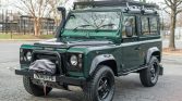 This 1995 Land Rover Defender 90 is a right-hand drive example that was imported in 2020 and acquired by the seller in March 2021, after which it underwent interior refurbishment at Rover Land of Dawsonville, Georgia. The truck is powered by a 2.5-liter 300Tdi inline-four mated to a five-speed manual transmission and a dual-range transfer case and was repainted in green with black trim over a tan vinyl upholstery. Features consist of a locking center differential, a snorkel, aluminum body panels, a sunroof, a winch, a brush grille, rock sliders, and a roof rack. Work conducted in June 2021 included a driveline fluid service, a vacuum flush of the brake system, a coolant system service, grease point lubrication, an oil leak repair, and an oil change.