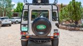 NAS models were equipped with a roll cage from the factory, and this example features aluminum body panels finished in Alpine White. Additional features include a front brush guard, a roof rack, a pop-up sunroof, checker-plate trim, headlight and taillight protection, a rear ladder, black wheel arch flares, tubular side steps, and auxiliary lights. A rear plaque identifies this truck as #185/500.