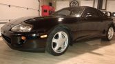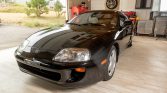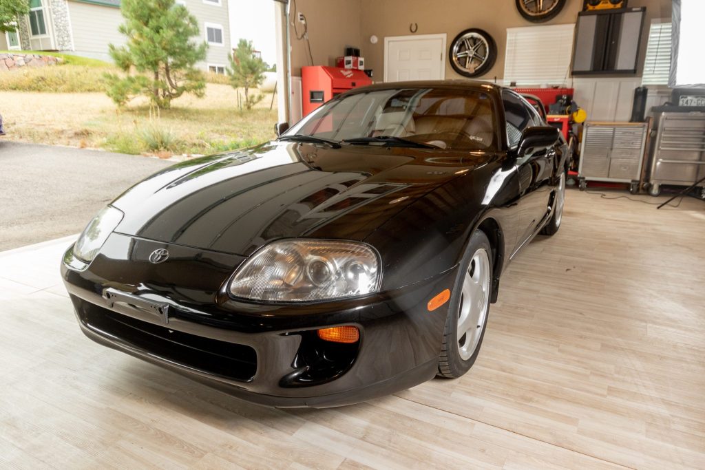 This 1995 Toyota Supra Turbo is finished in black over tan leather upholstery and is powered by a twin-turbocharged 3.0L inline-six paired with a four-speed automatic transmission. Equipment includes a removable roof panel, a rear wing, an alarm system with remote start, automatic climate control, cruise control, power accessories, and a GReddy boost controller and data logger.