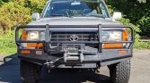 This 1996 Toyota Land Cruiser is finished in beige and gray over gray leather and is powered by a 4.5-liter inline-six mated to a four-speed automatic transmission, a dual-range transfer case, and optional front and rear locking differentials. Additional features include automatic headlights, an ARB front bumper, a Warn winch, 16″ alloy wheels, a sunroof, air conditioning, cruise control, and a Kenwood CD stereo.
