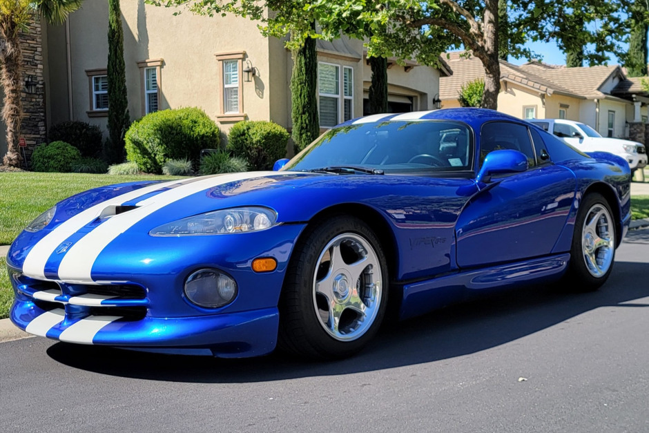 This 1997 Dodge Viper GTS Coupe is finished in blue with white stripes over black leather and powered by an 8.0-liter V10 mated to a six-speed manual transmission and a limited-slip differential. Factory equipment includes an Alpine CD stereo, air conditioning, power aLessories, polished 17″ wheels, fog lights, and an integrated rear spoiler. The car was first registered in Ohio and spent time in Washington and Oregon before it was acquired by the seller in 2015 and…