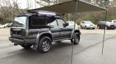 The truck is finished in Dark Emerald Pearl and features gray lower body cladding, bumpers, and fender flares. Additional equipment includes running boards, LED taillights, sliding rear side windows, a rear wind deflector, a tow hitch, an IronMan 4×4 roof basket, and a retractable canopy equipped with an LED light bar.