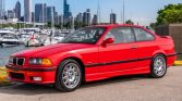 This 1998 BMW M3 coupe was purchased new by the seller from Momentum BMW of Houston, Texas, and relocated to Illinois in 2003. The car is finished in red over black Nappa leather and is powered by a 3.2-liter inline-six paired with a five-speed manual transmission and a limited-slip differential. Equipment includes fog lights, a rear spoiler, cruise control, a sunroof, heated Vader sport seats, automatic climate control, and a Harman Kardon audio system.