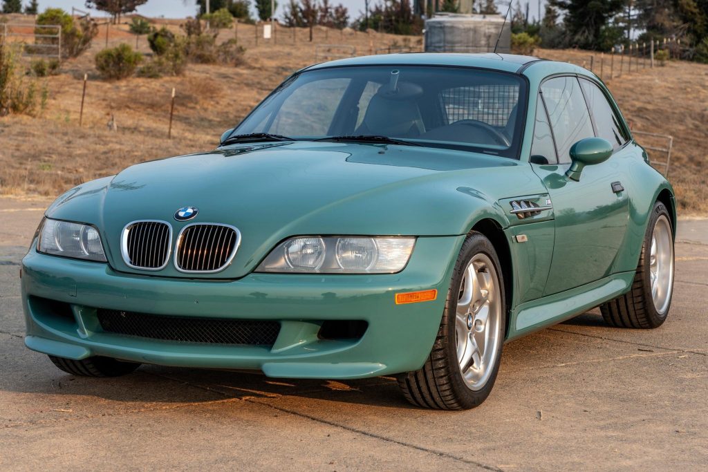 This 2000 BMW M Coupe is finished in Evergreen over Evergreen and black Nappa leather and is powered by a 3.2-liter S52 inline-six paired with a five-speed manual transmission and a limited-slip differential. Equipment includes 17″ RoadStar wheels, heated sport seats, an electric sunroof, a Harman Kardon sound system, cruise control, and air conditioning. The car was delivered new to Sonnen BMW in San Rafael, California, and was acquired by the current owner in 2020. Subsequent service reportedly included refreshing the cooling system, repairing the driver’s seat motor, changing the fluids, and replacing the tires, floor mats, emblems, battery, flex disc, and clutch assembly.