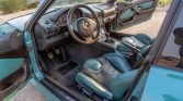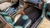 The cabin features door panels and heated sport seats trimmed in Evergreen and black Nappa leather. Amenities include a Harman Kardon sound system, air conditioning, and cruise control. The seller notes that the driver’s seat motor was rebuilt in preparation for the sale and that items replaced under current ownership include the floor mats, shift knob, and shift boot. The auto-dimming rearview mirror is in need of repair.