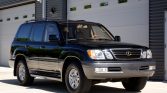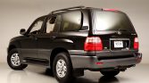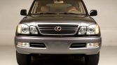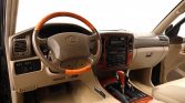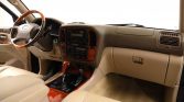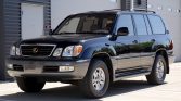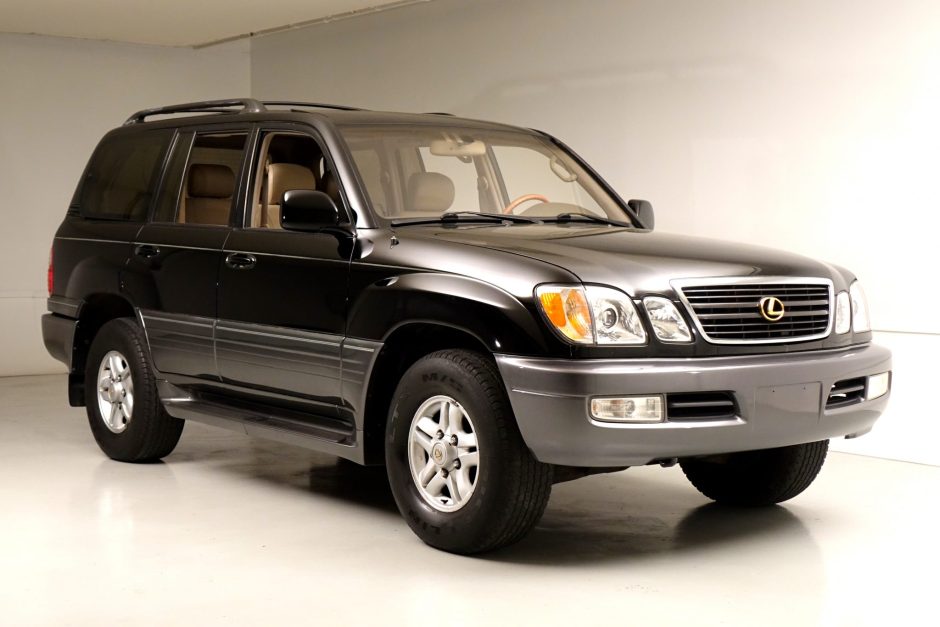 This 2000 Lexus LX470 is powered by a 4.7-liter V8 paired with a four-speed automatic transmission and a two-speed transfer case, and is finished in Black Onyx over Ivory leather. Additional equipment includes 16″ alloy wheels, a sunroof, a Nakamichi stereo system, automatic climate control, heated front seats, third-row seating, and running boards.