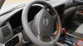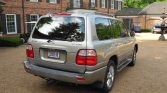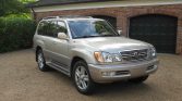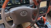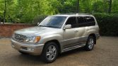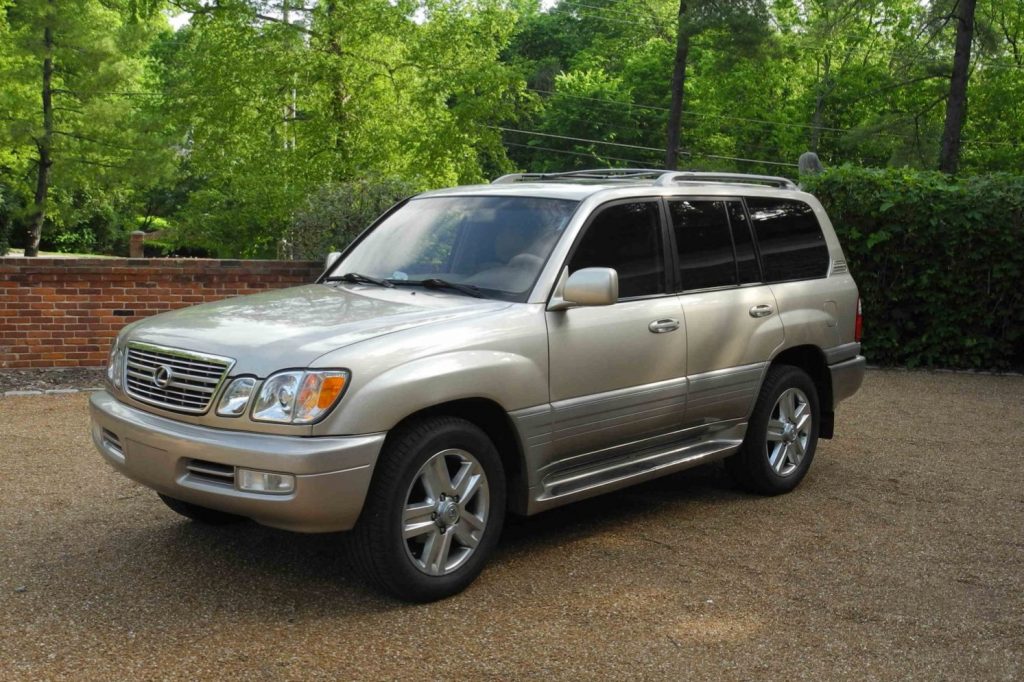 This 2002 Lexus LX470 is finished in beige and gray over Ivory leather and is powered by a 4.7-liter V8 paired with a four-speed automatic transmission, a dual-range transfer case, and a locking center differential. Additional equipment includes 20″ wheels, Adaptive Variable Suspension, Adjustable Height Control, fog lights, power-adjustable and heated front seats, third-row seating, and a Mark Levinson premium audio system.