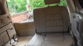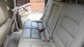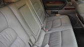 The three-row cabin features seating upholstered in Ivory leather along with walnut wood aLents on the dashboard, steering wheel, gear selector, center console, and door panels. Equipment includes heated and power-adjustable front seats, automatic climate control, cruise control, and a Mark Levinson premium audio system with a six-disc CD changer mounted in the center console.