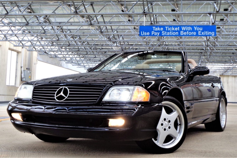 …This 2002 Mercedes-Benz SL500 is powered by a 5.0-liter V8 paired with a five-speed automatic transmission and finished in black over tan leather. Equipment includes a power-operated black soft top, a body-color removable hardtop, the AMG Styling Package, 18″ AMG wheels, heated and power-adjustable seats with memory, automatic climate control, burl walnut interior trim, and a trunk-mounted CD changer. The car spent time in Maryland and Florida before being acquired by the seller in July 2021.