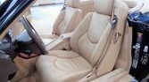 The cabin features seating surfaces upholstered in Saffron Nappa leather (234A) with matching door panels and carpets along with burl walnut trim on the doors and center console. Branded floor mats line the footwells, and amenities include heated power-adjustable seats with position memory, automatic climate control, power accessories, cruise control, a trunk-mounted six-disc CD changer, and a roll bar designed to automatically deploy in the event of a rollover.