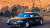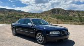 This 2003 Audi S8 is one of approximately 300 units imported for the final US model year of the D2 platform. Finished in Ming Blue Pearl Effect over Platinum Valcona leather, its 40-valve 4.2L V8 was replaced in 2016. It was retrofitted in September 2022 with a six-speed manual transaxle, which drives all four wheels through a Quattro all-wheel-drive system with a Torsen center differential. BBS 18″ wheels, Bilstein shock absorbers, European-specification xenon headlights, heated front and rear…