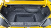 The car is finished in Spa Yellow Pearl and features a power-operated black soft top with a glass rear window. Additional details include xenon headlights, dual roll hoops, and polished dual exhaust outlets.