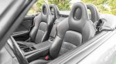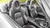 The car is finished in Silverstone Metallic (NH-630M) and features a replacement power-operated black folding soft top with a heated glass rear window. Additional equipment includes a convertible top boot, xenon headlights, dual roll hoops, and polished dual exhaust outlets.
