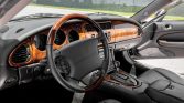 The 2+2 cabin features seating surfaces upholstered in Charcoal leather and features burl walnut trim on the door panels, dashboard, and center console. Jaguar-branded floor mats line the footwells, and the front seats are heated and power-adjustable. Other amenities include a factory cassette stereo linked with a trunk-mounted CD changer, rain-sensing wipers, automatic climate control, navigation, and cruise control. The seller states the headliner was replaced in April 2019.