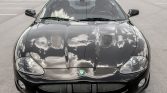 This 2003 Jaguar XKR coupe is finished in black over Charcoal leather, and it is powered by a supercharged 4.2-liter V8 paired with a six-speed automatic transmission. Additional equipment includes multi-piece 20″ wheels, automatic xenon headlights, Brembo brakes, power-adjustable and heated front seats, a cassette stereo with a trunk-mounted CD changer, navigation, and automatic climate control. The car spent much of its life in Illinois and was acquired in 2019 by the seller, who relocated it to Florida.