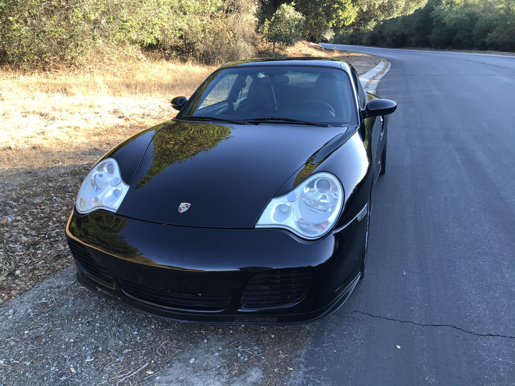 This 2003 Porsche 911 Turbo coupe is powered by a twin-turbocharged 3.6L Mezger flat-six paired with a six-speed manual transaxle and all-wheel drive. Finished in black over black leather, the car is equipped with a speed-activated rear spoiler, heated seats, Bose speakers, and cross-drilled brake rotors. Modifications include an Alpine head unit, a Rockford Fosgate amplifier, 19″ 997 Turbo Wheels, a Clutch Masters clutch, and an EVOMS air intake, clutch cylinder conversion kit, and turbocharger inlet ducts.