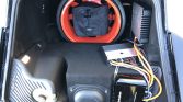 Five-spoke 19″ 997 Turbo wheels feature Porsche-crest center caps and are wrapped in 235/35 front and 305/30 rear Bridgestone Potenza S-04 Pole Position tires. A compact spare is secured in the trunk. Four-wheel vented and cross-drilled rotors are fitted with red Porsche-script calipers, and the car is equipped with Porsche Stability Management and an automatic brake differential. The seller states that a brake fluid flush was recently performed.