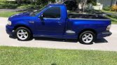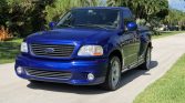 This 2004 Ford F-150 SVT Lightning is powered by a supercharged 5.4-liter Triton V8 paired with a four-speed automatic transmission and a Traction-Lok differential and is one of 596 examples finished in Sonic Blue for the model year. The truck was sold new in Canada and remained there until it was acquired by the seller and imported to the US in 2018. Features include gray and black Alcantara and leather upholstery, 18″ wheels, side-exit exhaust, a tonneau…