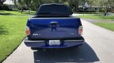 The truck is finished in Sonic Blue (SN) and includes Lightning-specific bumper covers and side skirts, side-exit exhaust outlets, clear taillights, tinted windows, a sliding rear window, a receiver hitch, fog lights. A Lund tonneau cover is included.