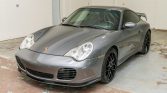 This 2004 Porsche 911 Carrera 4S coupe is finished in Seal Grey Metallic over black full leather upholstery and powered by a 3.6-liter flat-six mated to a six-speed manual transaxle and all-wheel drive. Equipment includes Porsche Stability Management, automatic climate control, a GT2-style rear spoiler, xenon headlights, aftermarket 19″ wheels, heated and power-adjustable front seats, and a Kenwood touchscreen stereo hooked to a Bose high-end sound system.