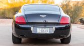 This 2005 Bentley Continental GT is finished in dark blue over cream leather and is powered by a twin-turbocharged 6.0-liter W12 paired with a six-speed automatic transmission and all-wheel drive. Equipment includes headlight washers, 19” wheels, heated and power-adjustable front seats, dual-zone automatic climate control, a navigation system, wood trim, and paddle shifters.