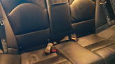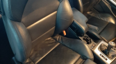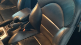 The seats are upholstered in black Nappa leather with a matching door panel inserts as well as milled-effect aluminum trim. Additional equipment includes automatic climate control, power-adjustable front seats, and a Harman Kardon sound system connected to an Avin head unit.