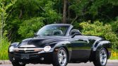 This 2005 Chevrolet SSR is finished in black over black leather and powered by a 6.0-liter LS2 V8 mated to a six-speed manual transmission and a limited-slip differential. Features include a retractable roof, a hard tonneau cover, heated and power-adjustable seats, a Belltech lowering kit, chrome-finished wheels, wood bed trim, a Bose audio system, and the optional 1SB Premium Equipment Group. The truck was first registered in Wisconsin and spent time in Illinois, Ohio, and Michigan before being acquired by the current owner in March of 2021.