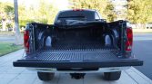 The Quad Cab interior features two rows of bench seats upholstered in Dark Slate Gray cloth, and interior appointments include a power-adjustable driver’s seat, an Infinity sound system, air conditioning, and a JVC head unit. Blue interior lights, WeatherTech floor liners, a back-up camera, a Hayes trailer brake controller, an aftermarket horn, and a GT Bully Dog fuel tuner have also been installed.