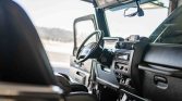 Black cloth Corbeau bucket seats with four-point harnesses have been added up front, and the interior is further appointed with a folding rear bench seat, an Alpine head unit, a factory navigation system, air conditioning, all-weather floor mats, and a trio of 12-volt power outlets in the rear.