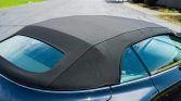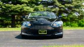 The DB9 featured a mix of aluminum and composite body panels installed over an extruded aluminum spaceframe. This example is finished in Jet Black with a replacement black soft top and features a Tungsten grille, rear parking sensors, hood vents, fender vents, LED taillights, power-folding mirrors, and dual exhaust outlets.