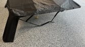 Charcoal-finished 17″ Mammoth wheels and 35×12.50″ Nitto Ridge Grappler tires were installed in November 2024. A mismatched spare is affixed to the swing-out rear carrier. The suspension is modified with a 4.5″ lift kit featuring a Fox steering stabilizer and Bilstein remote-reservoir shocks. Stopping power is provided by four-wheel disc brakes. A set of four Fuel wheels with 37×12.50″ Maxxis Trepador tires that match the current spare are included in the sale.