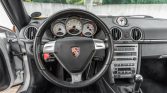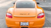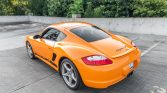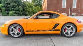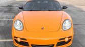 This 2006 Porsche Cayman S is powered by a 3.4-liter flat-six paired with a six-speed manual transaxle and has been modified with a GT3 shifter and a 90mm Remus Street cat-back exhaust. The car is finished in Arctic Silver Metallic and wears a Gloss Orange vinyl wrap over a black leather interior. Equipment includes 19″ Carrera S wheels, xenon headlights with washers, heated seats, automatic climate control, tinted windows, the Sport Chrono Package, and a Bose Surround…