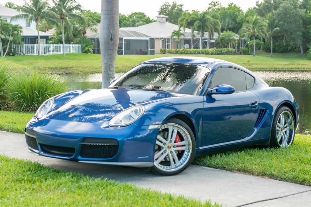 This 2006 Porsche Cayman S is finished in Cobalt Blue Metallic over Natural Brown leather and powered by a 3.4-liter flat-six mated to a six-speed manual transaxle. Equipment includes 19″ multi-piece wheels, bi-xenon headlights, automatic climate control, LED running lights, Bilstein dampers, an AWE Tuning exhaust system, and a Bluetooth-capable touchscreen Sony stereo hooked to a Bose surround-sound system. The car was first registered in California and later spent time in Florida where it was acquired by…