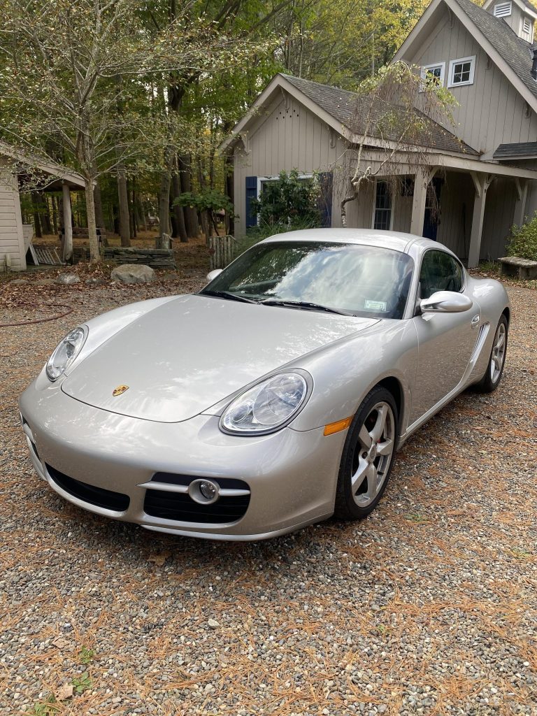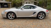 This 2006 Porsche Cayman S is finished in Arctic Silver Metallic over Stone Grey leather and powered by a 3.4-liter flat-six paired with a six-speed manual transaxle. Equipment includes 18″ five-spoke wheels, red-painted brake calipers, cross-drilled rotors, a speed-sensitive rear spoiler, heated seats, air conditioning, and a factory CD stereo.