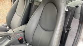 The cabin features heated seats upholstered in Stone Grey leather with matching plastics and carpets, the latter of which are protected by black Porsche-branded floor mats. Additional amenities include cruise control, air conditioning, heated seats, and a factory CD stereo.